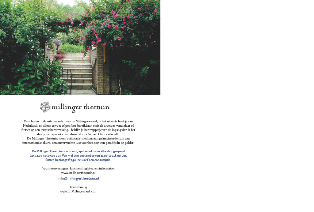29 maart t/m oktober 2025 – Theetuin Millingem aan de Rijn.