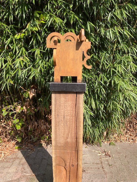 In de Islamitische wereld wordt de K’AABA tijdens de Hadj in Mekka geëerd. Het verhaal hierover zegt dat het een doos is waarin een zwarte steen zit, die gevonden is door profeet Mohammed. Hoe het er precies uitziet is voor ons westerlingen niet duidelijk. Dit is een van de belangrijkste symbolen in de Islamitische religie. Een symbool dat ik als beeldhouwer probeer voor te stellen in dit beeld als eerbetoon aan de Islamitische wereld
