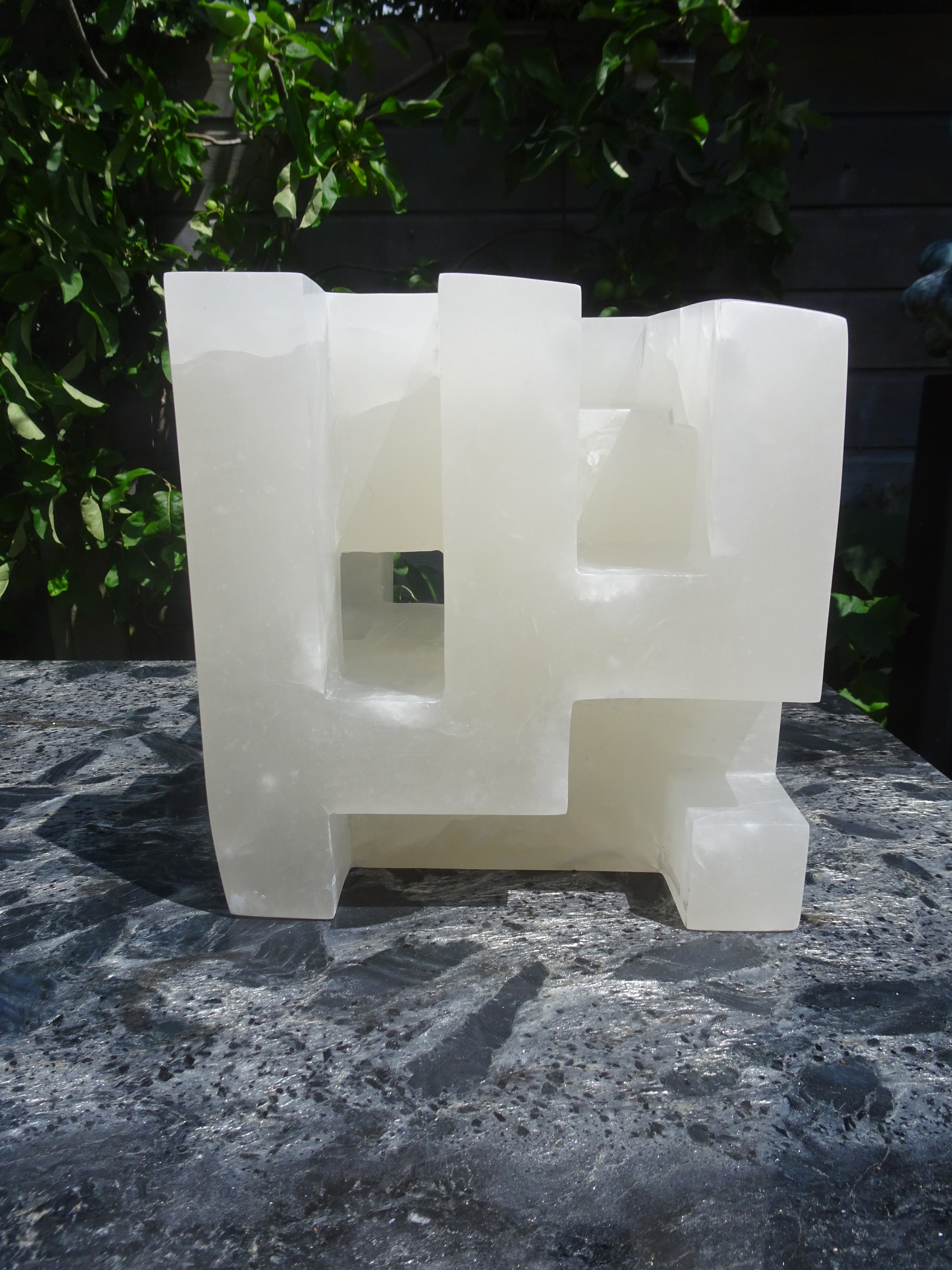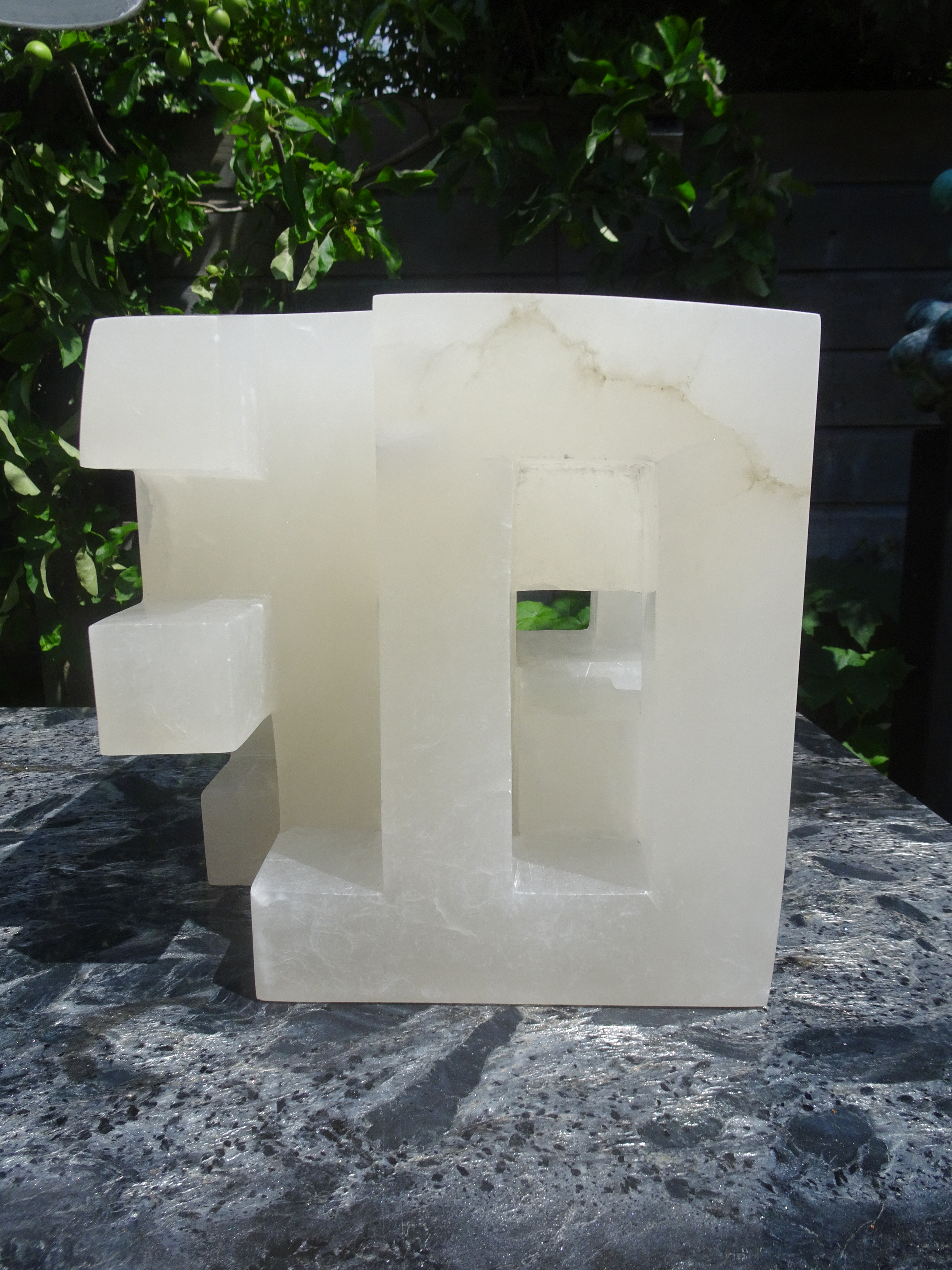 Dit beeld is gemaakt in wil albast om zijn serine uitstraling en ook omdat dit materiaal van oudsher afkomstig is uit het midden – oosten